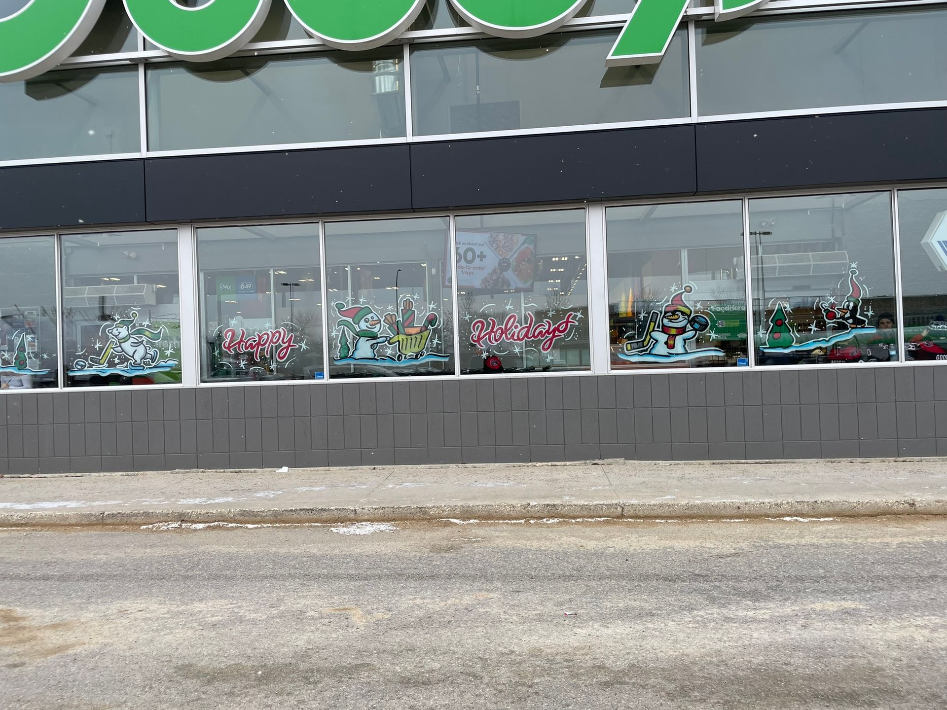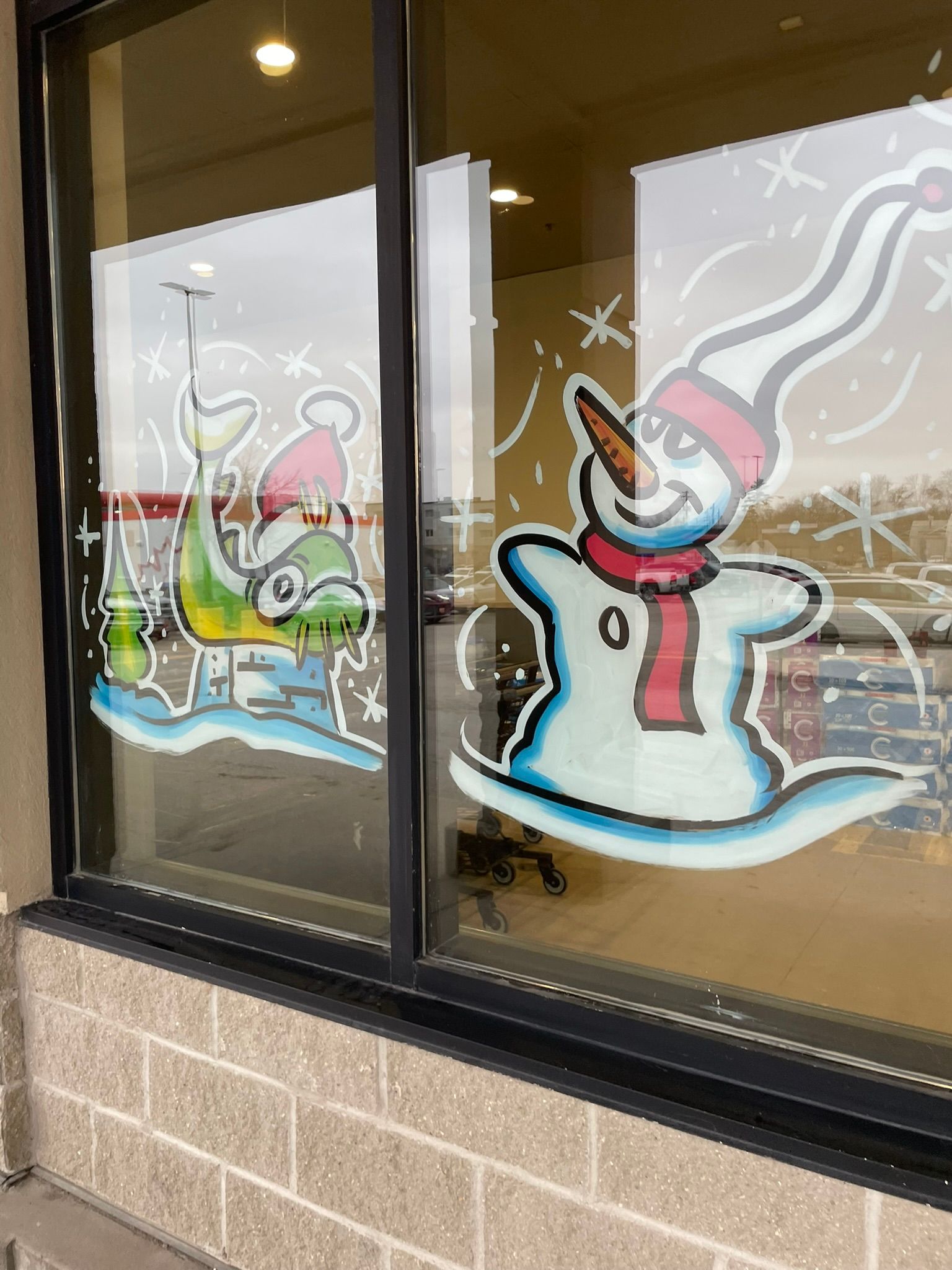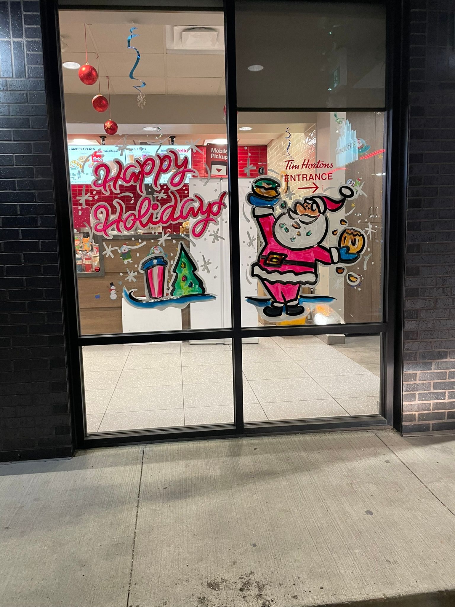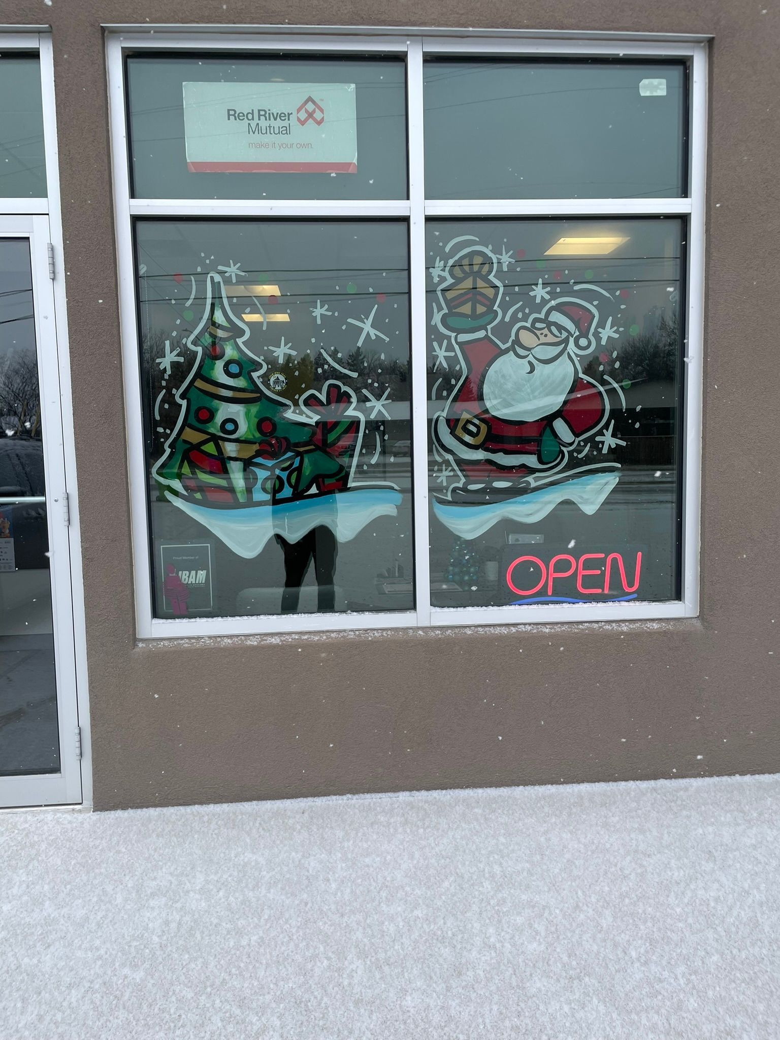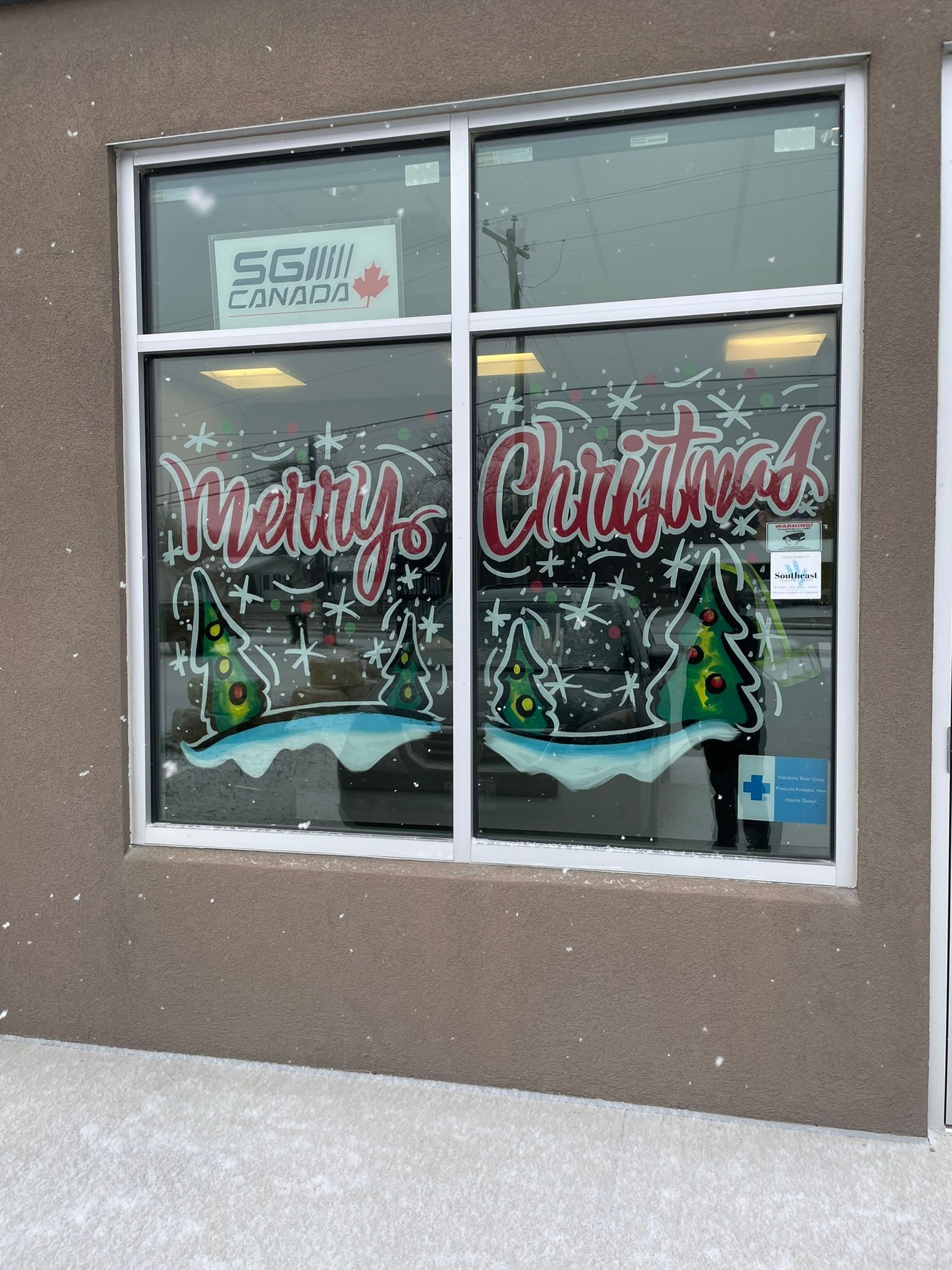 During the Christmas and Holiday season it is wonderful to decorate your business with festive Window Paintings. Real Life Signs paintings bring a lot of attention to your store front. We can add custom elements from your business into your painting.