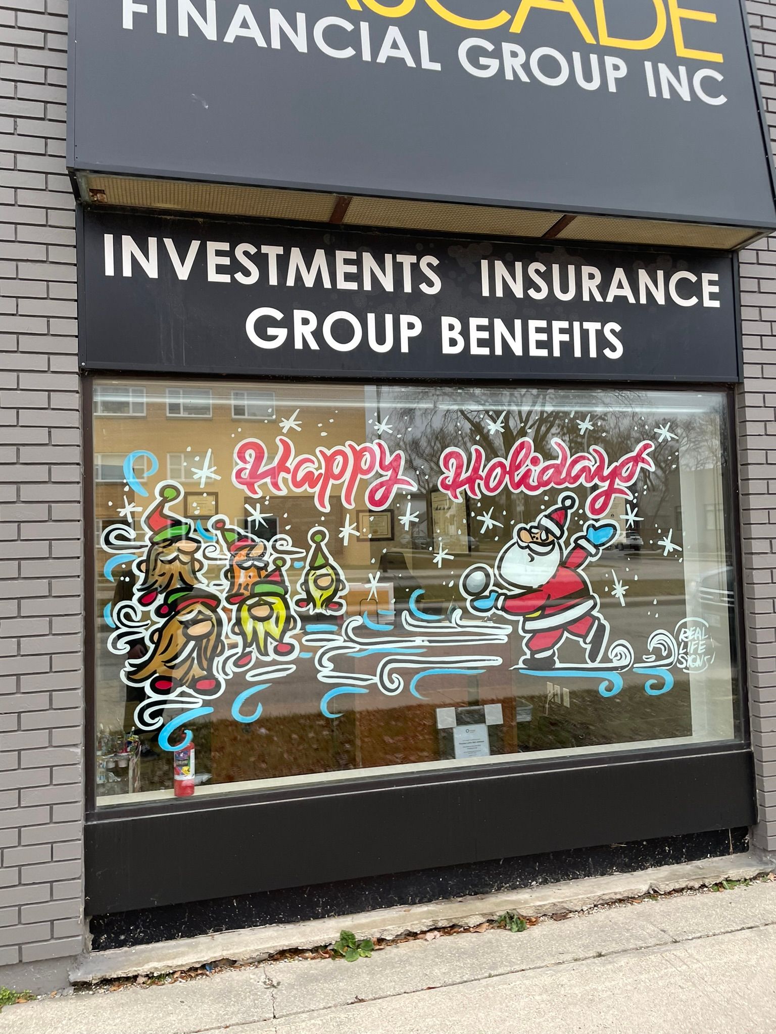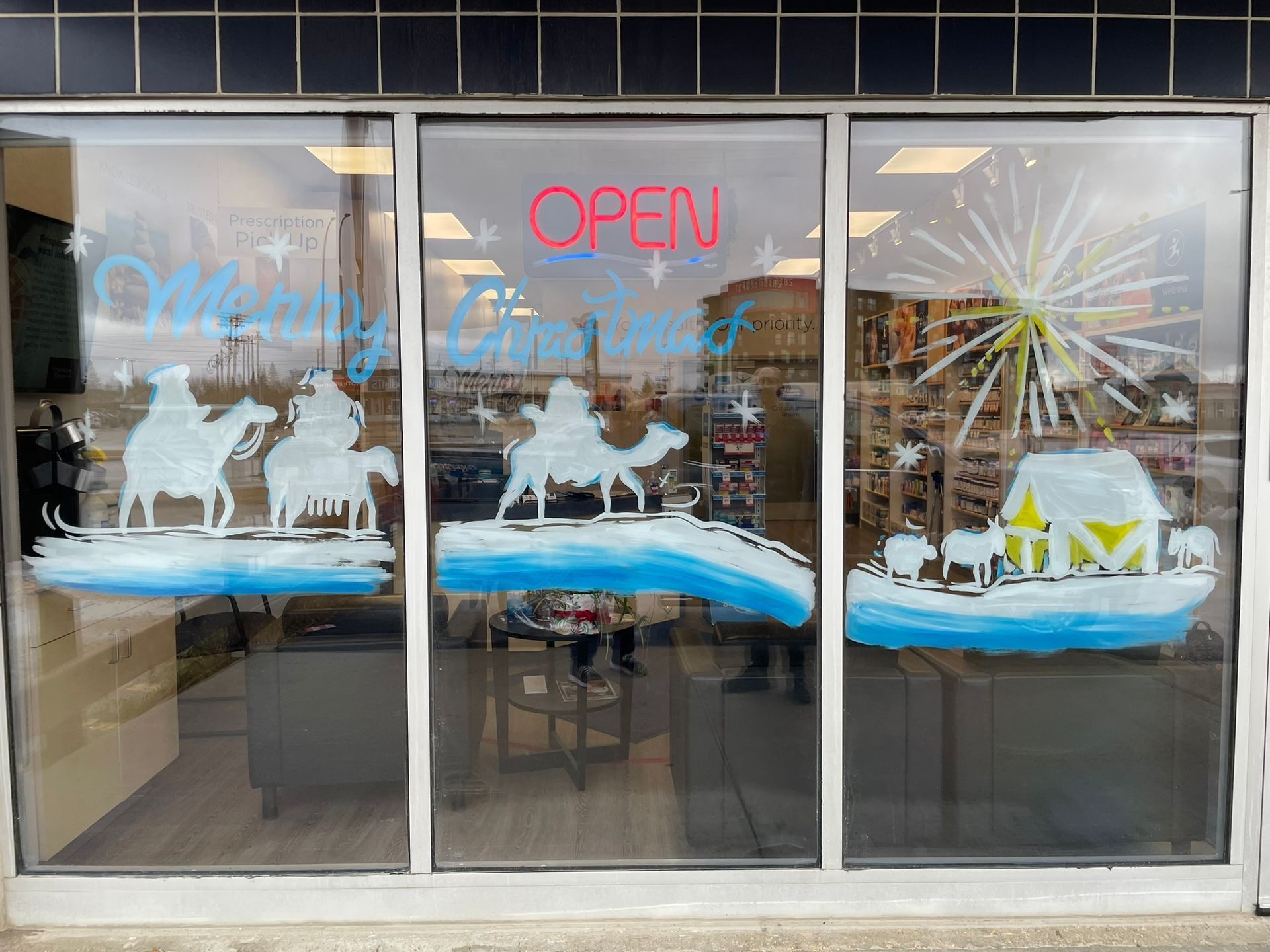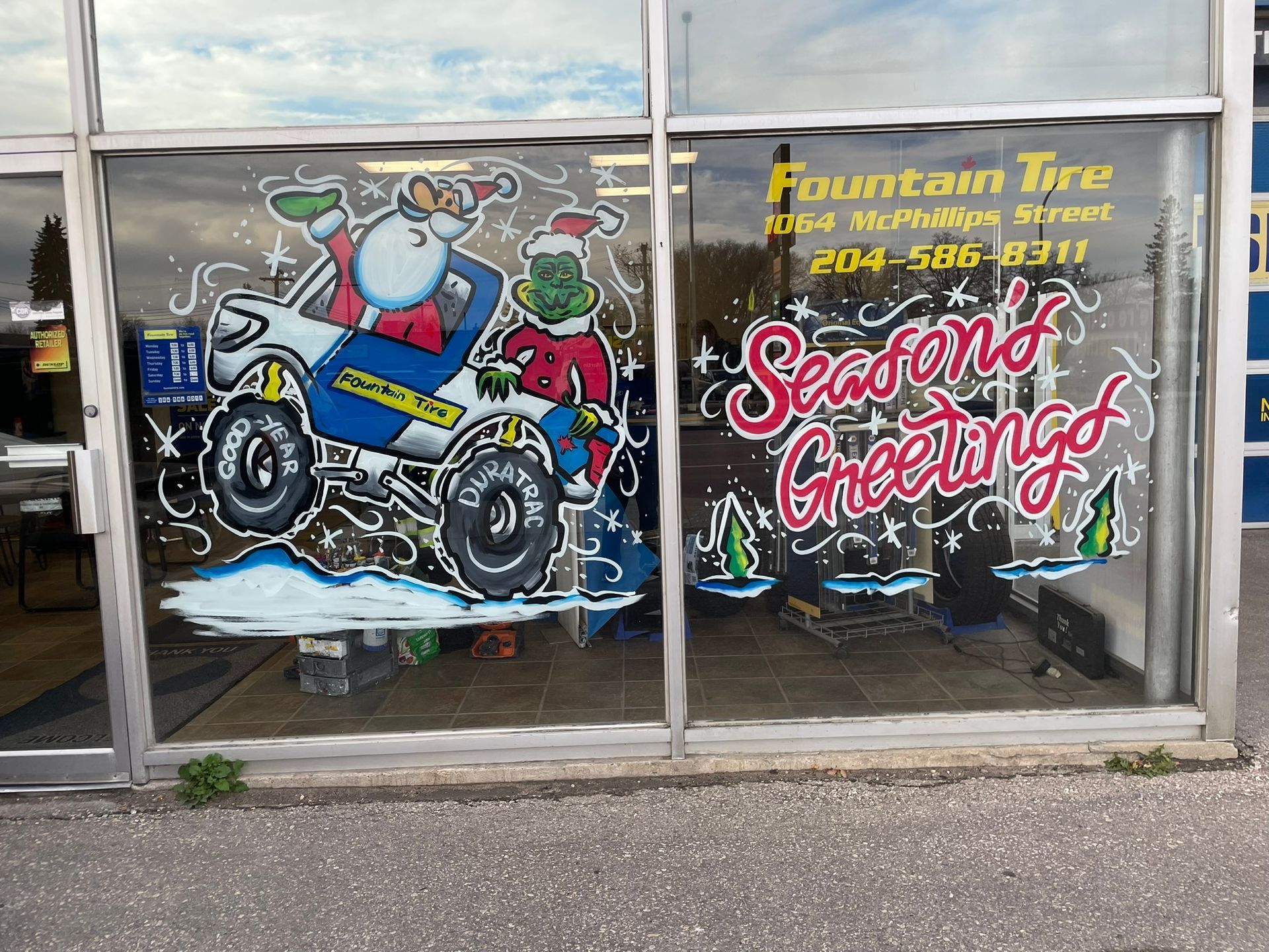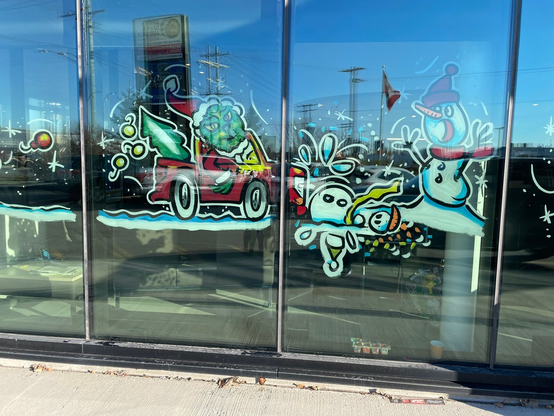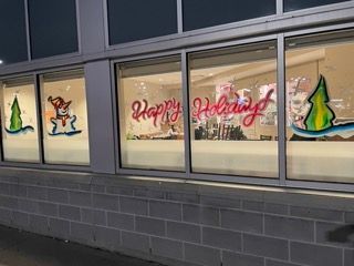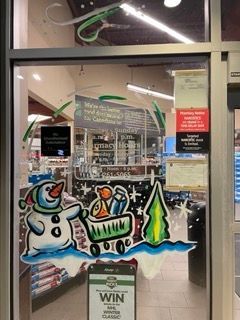 During the Christmas and Holiday season it is wonderful to decorate your business with festive Window Paintings. Real Life Signs paintings bring a lot of attention to your store front. We can add custom elements from your business into your painting.