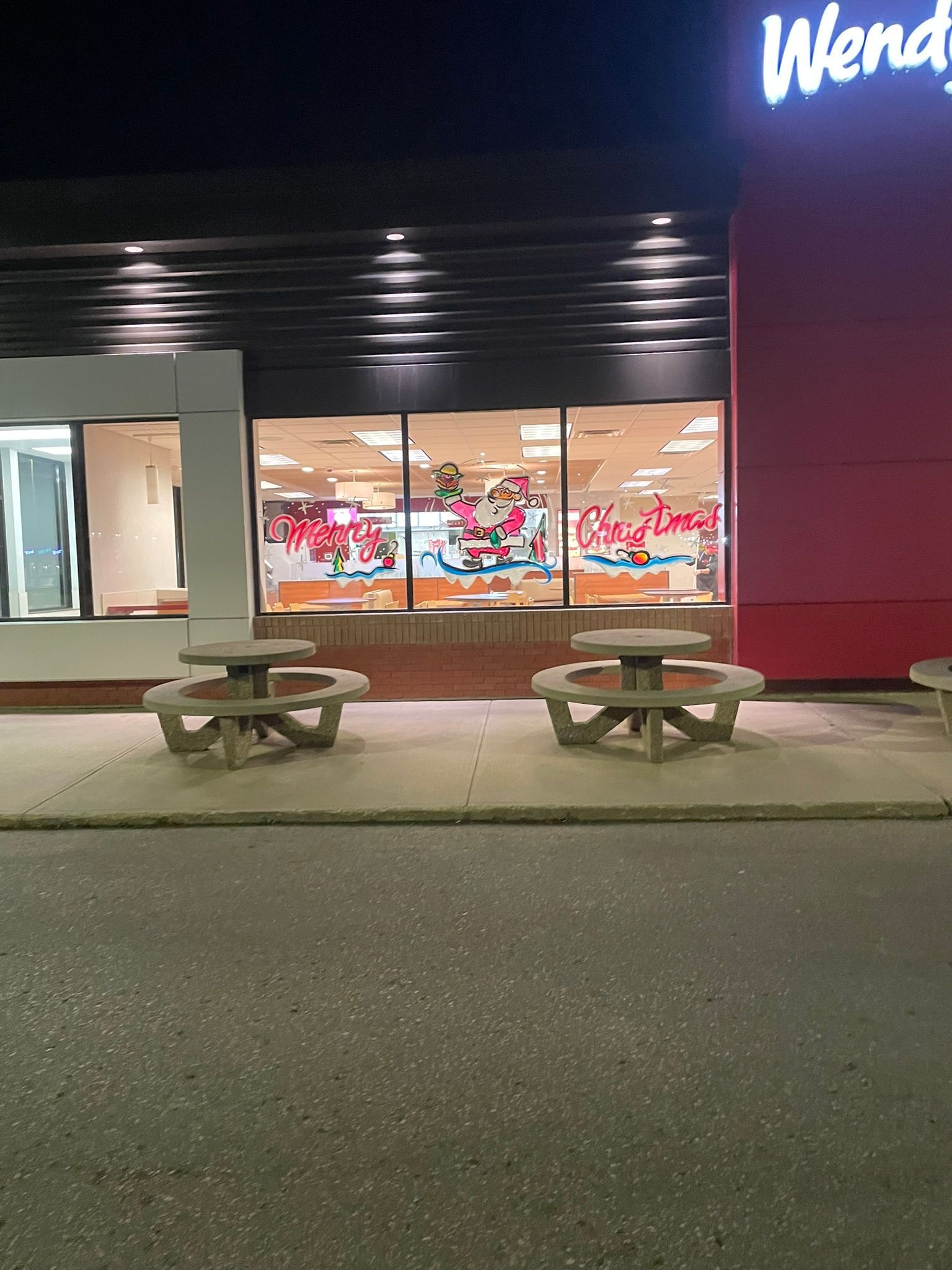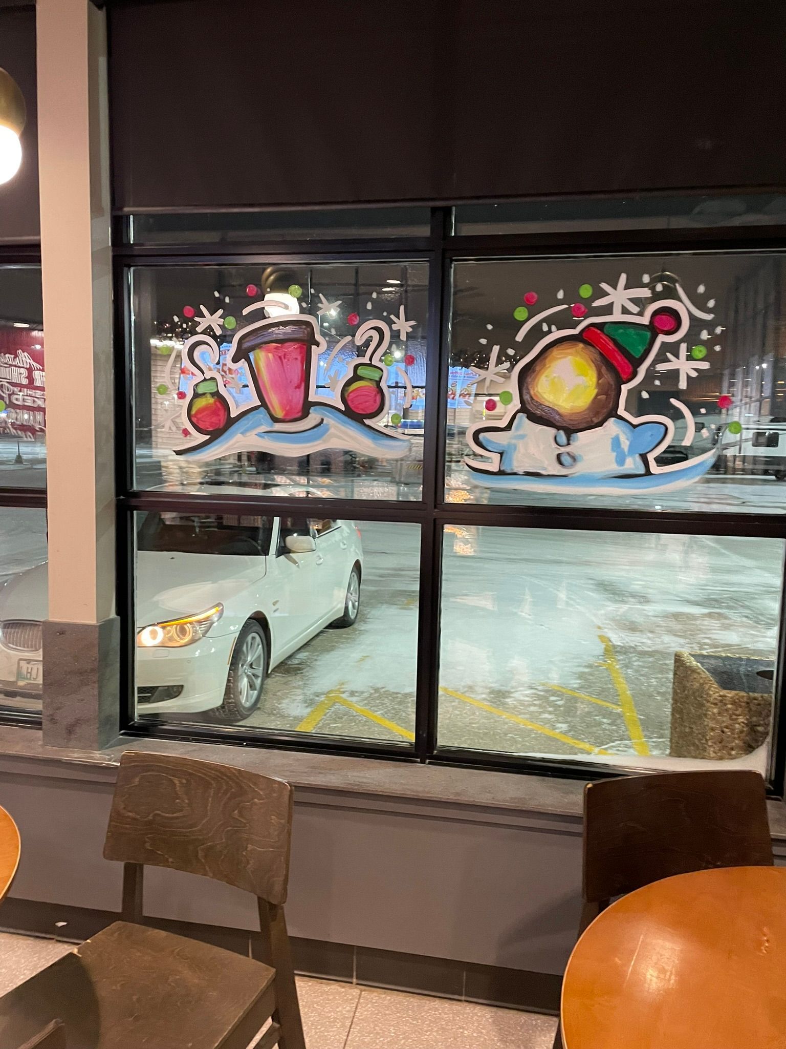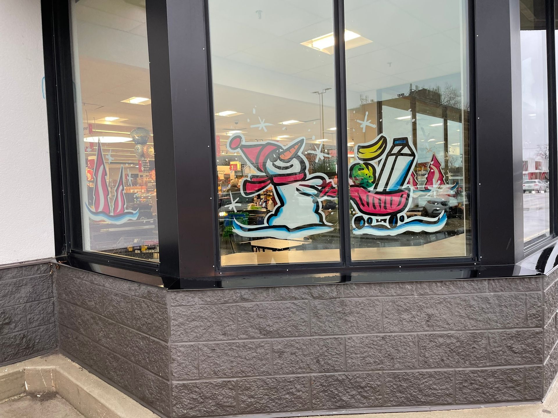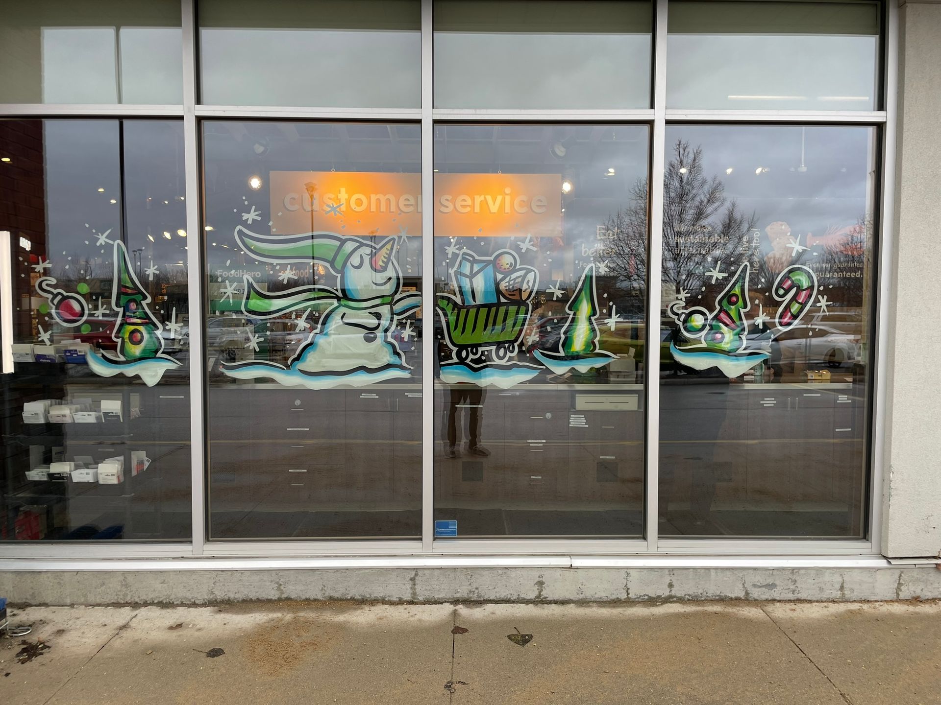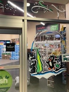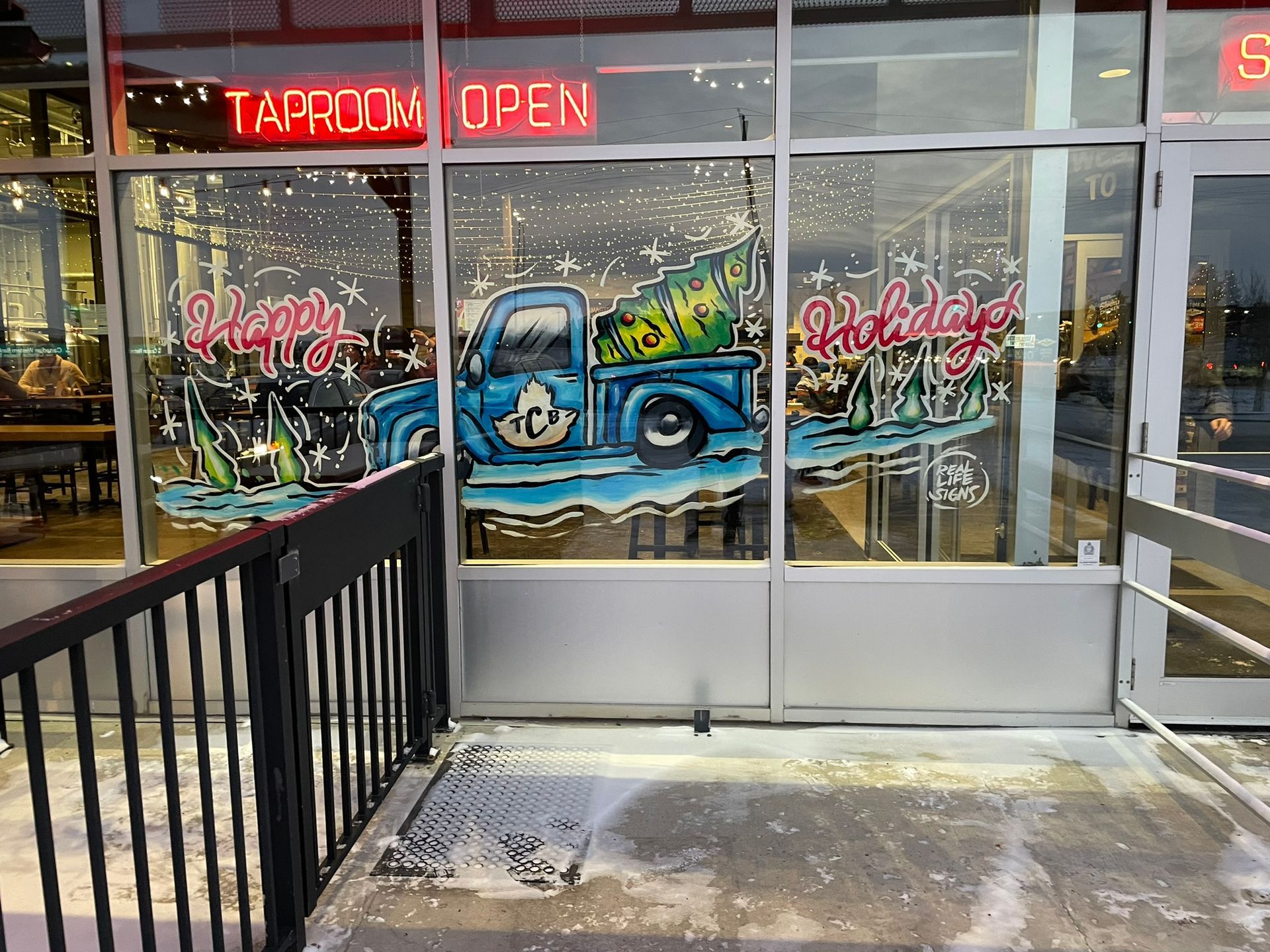 During the Christmas and Holiday season it is wonderful to decorate your business with festive Window Paintings. Real Life Signs paintings bring a lot of attention to your store front. We can add custom elements from your business into your painting.